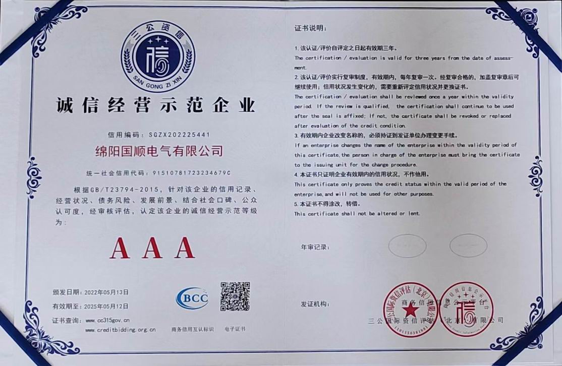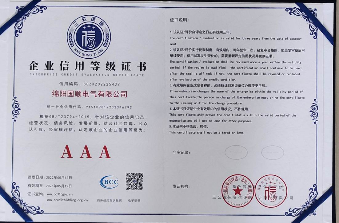 企业信用等级证书
